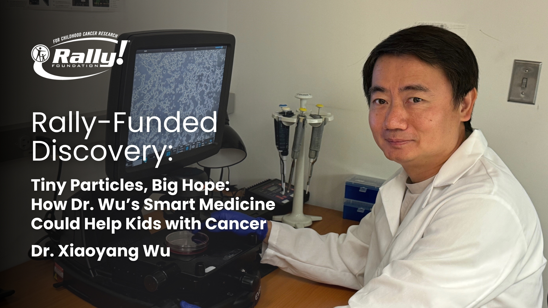 Dr. Wu got early research funding from the Rally Foundation in 2024. That grant helped him and his team test something amazing in the lab: super-tiny particles called nanoparticles that can carry cancer-fighting medicine straight to the tumor, like a delivery truck that knows exactly where to go.